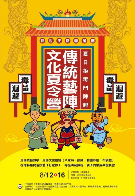 二、本活動透過優良傳統藝陣文化之傳遞與正向表演的方式,結合在地民俗技藝與民俗文化體驗,推動良善宗廟教化及民俗文化傳承活動,藉由形象良好宮廟藝人賴銘偉推動優質正向藝陣文化活動,打擊非法宮廟藝陣吸收學生從事非法不當行為,並提升參與青年學子認同及積極參與「防毒」與勇敢「拒毒」。