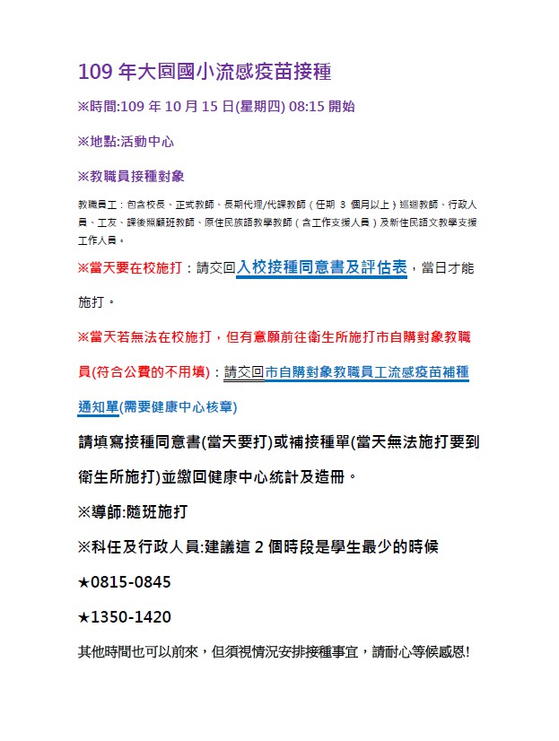 ※同意書請於10月5日前繳交(可以的話請儘快繳交,越快越好,方便整理統計造冊,非常非常感謝!)