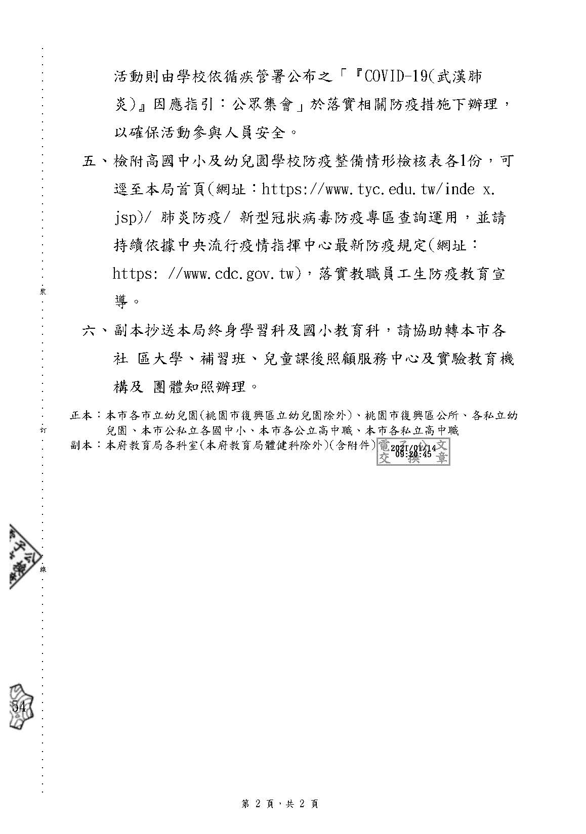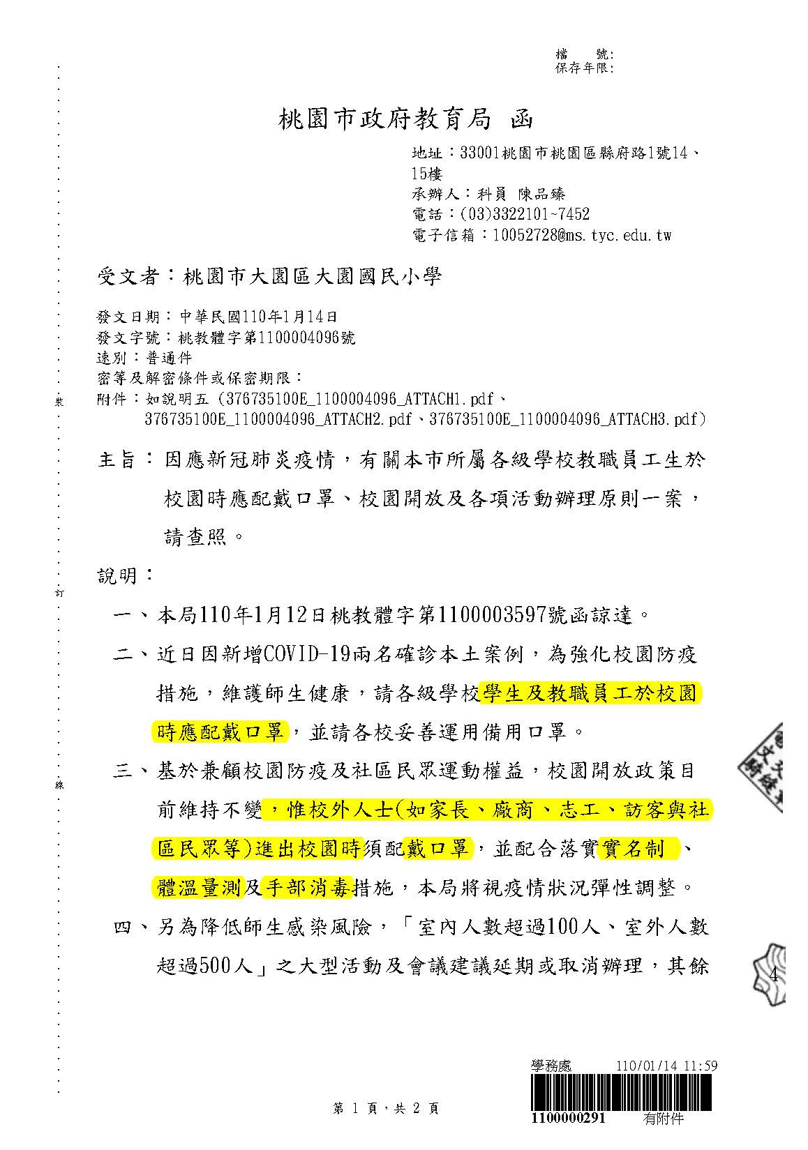 因應教育局最新防疫規定(110.1.14桃教體字第1100004096號函)
