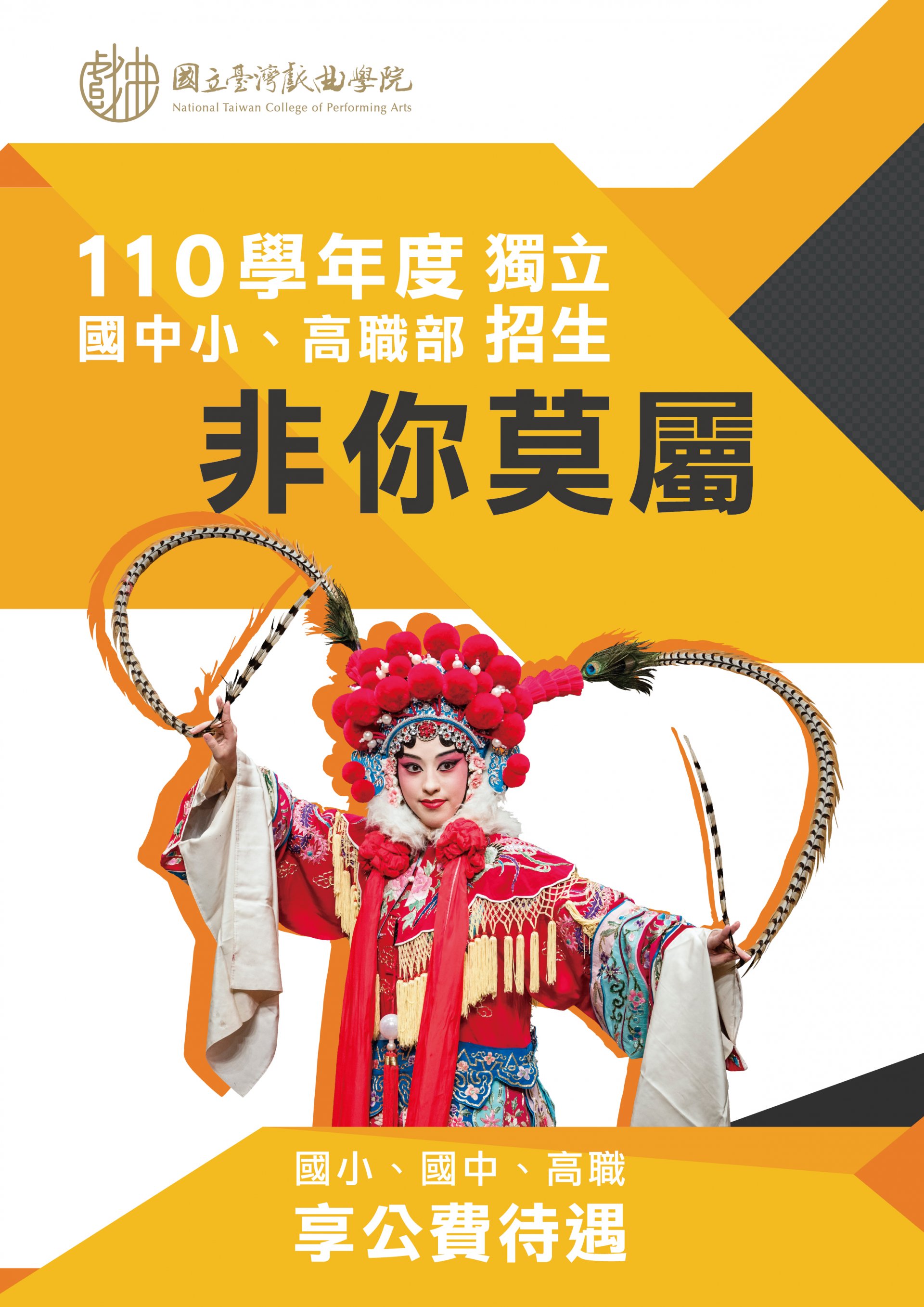 二、 國立臺灣戲曲學院為全國培育傳統表演藝術及現代劇場藝術專業人才首府,高職(含)以下入學後均享公費待遇;國中小入學後經升部評鑑通過者得直升國高中部。